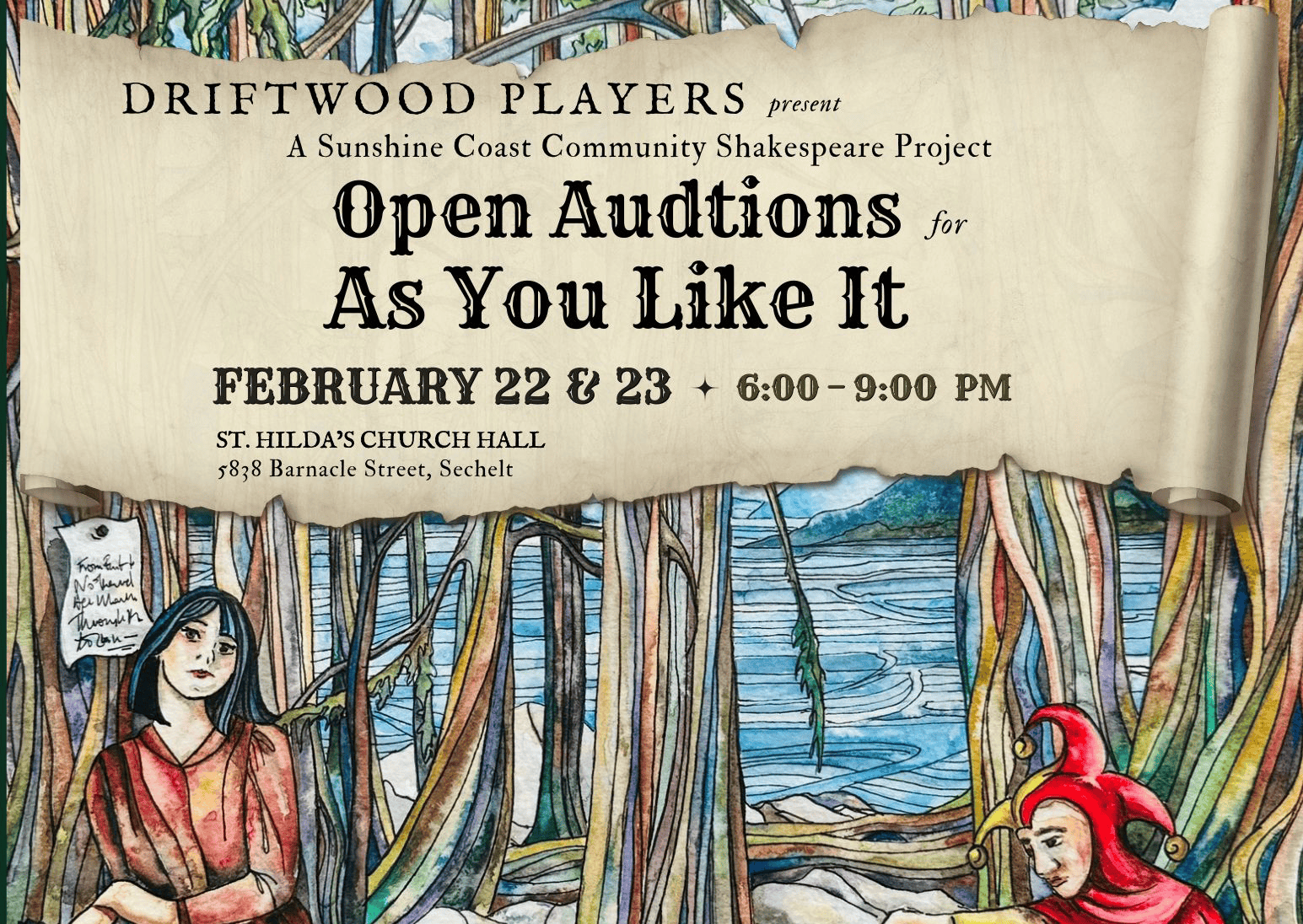 St. Hilda's Anglican Church Hall 5838 Barnacle St., Sechelt, British Columbia, Canada"All the world's a stage." Shakespeare's popular pastoral comedy about love, disguises, swapped gender roles, and banishment into the woods comes to the Sunshine Coast in July 2026! Auditions:Sun Feb 22...